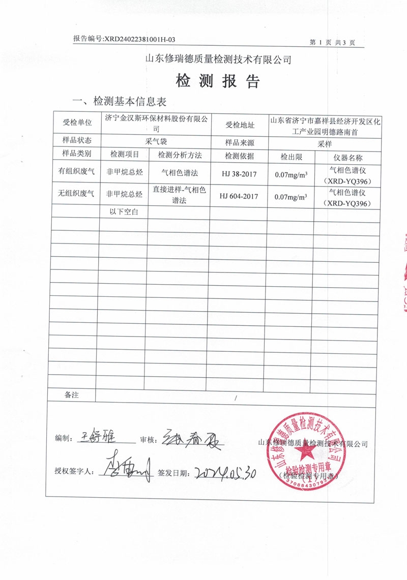檢測(cè)報(bào)告(2024.05.30) 2024-6-20 本文被閱讀 2116次
